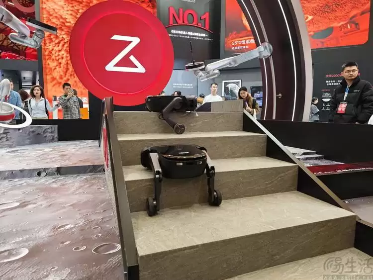 这家企业展出的核心产品,是今年初在CES展会上发布的全球首款轮足式扫地机器人G-Rover。与传统双足机器人不同,其反曲关节与轮足结合的设计,使设备在行进时几乎无声,更能跨越障碍物、攀爬楼梯,甚至在台阶处"蹲下"清洁传统机型难以触及的顶部区域。这种将科幻构想转化为实用功能的创新,让参观者直观感受到技术落地的价值。