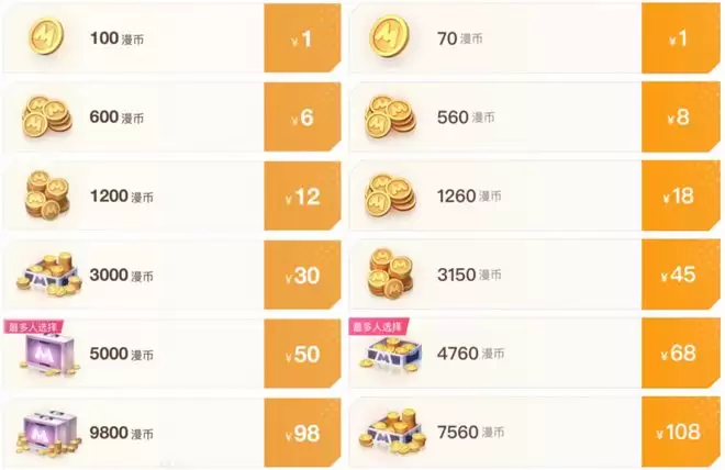 看漫画也是,1 块钱在安卓上是 100 漫币,在 iPhone 上是 70,也是少了 30%。