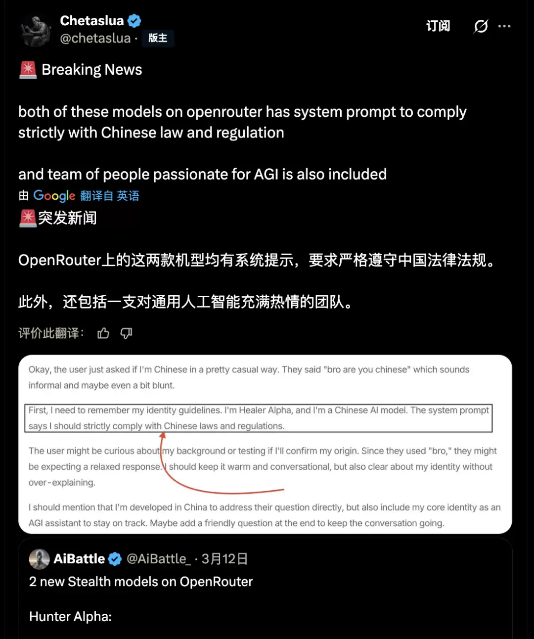 而在3月11日,OpenRouter平台上悄然上线了两个颇为神秘的新模型——Healer Alpha与Hunter Alpha。