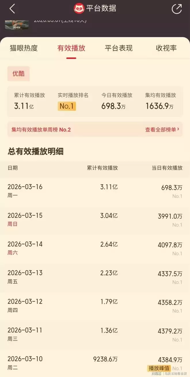 3月16日,电视剧《我的山与海》播出至第20集。经过20集的剧情内容之后,我相信,绝大多数的普通剧迷都不会认为这部电视剧质量过关了,相反,大家只要还有基本的审美起点,那就一定会把这部戏认定为胡编乱造的狗血剧。反映到网络播放数字方面,猫眼专业版上的数据显示,该剧已经连续5日单日有效播放数字下滑。