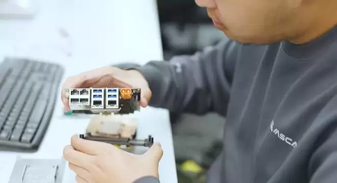 “大小脑”协同,难度不小。去年,灵境智源连续突破几个“不可能”:将传统CPU、GPU的200至300毫秒处理速度缩短到1毫秒内,效率提升10至100倍;散热器做到比同行小一半,10厘米内可接入14个传感器;还解决了机器人嘈杂环境下的语音降噪难题。