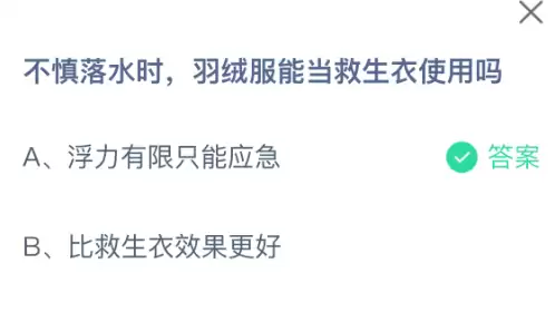 1、题目:不慎落水时,羽绒服能当救生衣使用吗