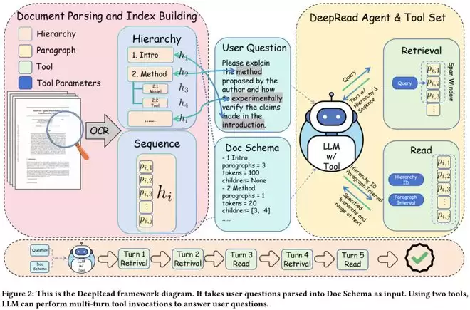 中国科学院计算技术研究所团队提出的DeepRead,核心创新是将文档结构转化为智能体可理解、可操作的坐标系统,通过两大工具协同实现类人推理,整体框架参考下图。