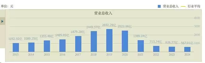 | 苏宁易购集团的营收也是从2024年开始持续下滑。数据来源:同花顺