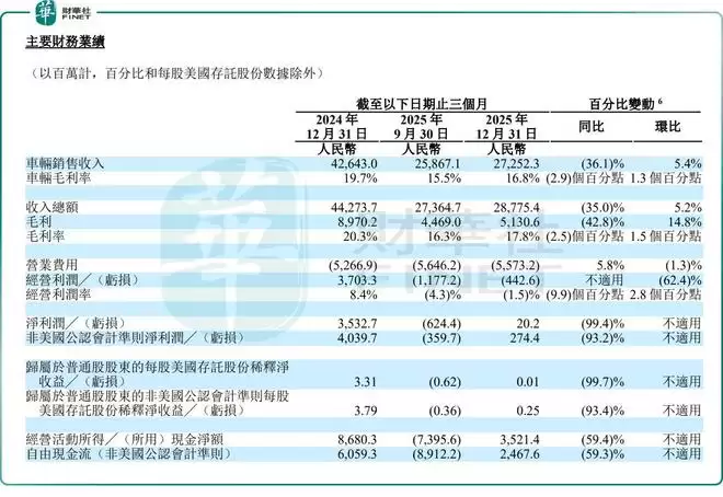 单季度看,理想汽车第四季度业绩虽环比实现小幅修复,但同比仍呈大幅下滑态势,未能扭转全年业绩颓势。