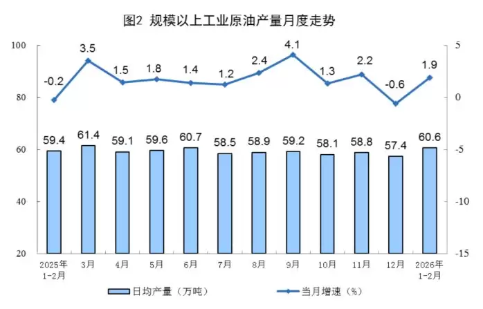 国家统计局:1-2月规上工业原油产量3573万吨 同比增长1.9%