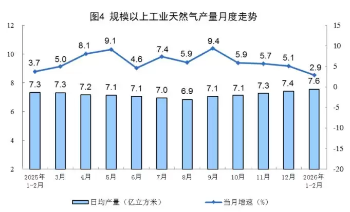统计局:前两月规上工业天然气产量达446亿方,同比增长2.9%