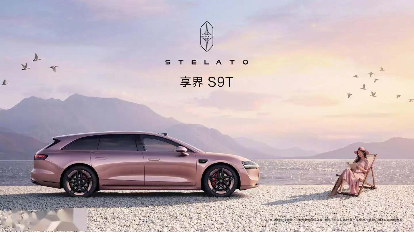 从最新发布的海报信息来看,享界S9将推出全新的“月绒白”配色,整体视觉效果优雅大气。而享界S9T则大胆采用“星玫粉”配色,不仅车身覆盖粉色车漆,轮毂也同步采用同色系粉色装饰,形成独特的视觉统一性。这一设计打破了传统豪华轿车的配色逻辑,为消费者提供了更具个性化的选择。