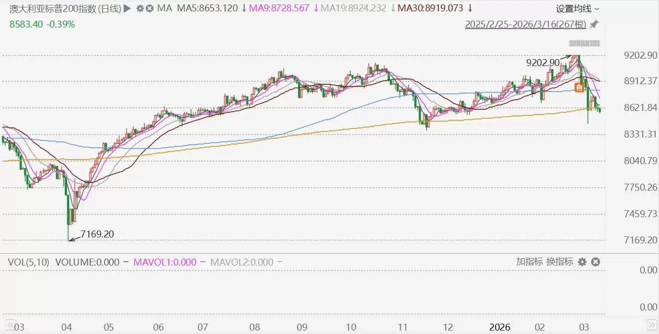澳大利亚股市在3月16日出现小幅回落,S&P/ASX200指数当日下跌33.70点,跌幅为0.39%,最终收于8583.40点。