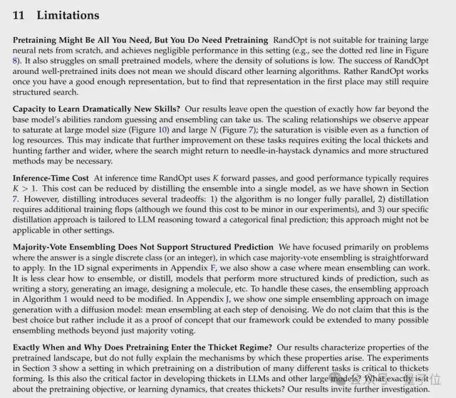 依赖优质预训练,这是一个基本大前提。模型只能基于预训练数据找改进,无法让模型学会新技能。K越大效果越好,但推理时要跑K个模型,虽然蒸馏能缓解,但蒸馏不适用于所有场景(比如生成式任务)。只适合有明确答案的任务,像写故事、设计分子这种结构化生成任务,还需要进一步改进集成方式。