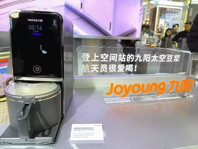 8年磨一剑,九阳于2024年研制出太空厨房(包括饮水设备、热风加热设备、太空豆浆等)成功入驻中国空间站,让航天员在太空也能喝上一杯干净的温热水、香浓的九阳太空豆浆和吃上热饭热菜。