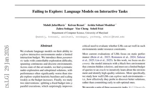 这项由马里兰大学计算机科学系团队完成的研究发表于2026年的学术预印本平台,论文编号为arXiv:2601.22345v1。研究团队成员包括Mahdi JafariRaviz、Keivan Rezaei、Arshia Soltani Moakhar、Zahra Sodagar、Yize Cheng和Soheil Feizi等多位研究者。这项研究首次系统性地揭示了当前最先进的语言模型在处理需要探索和发现的交互式任务时存在的根本性缺陷。