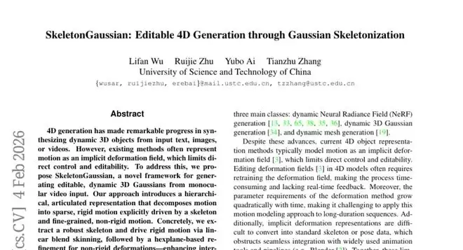 这项由中国科学技术大学研究团队完成的创新性研究发表于2026年,论文编号为arXiv:2602.04271v1,为4D数字内容生成领域带来了全新的突破。有兴趣深入了解的读者可以通过该编号查询完整论文。