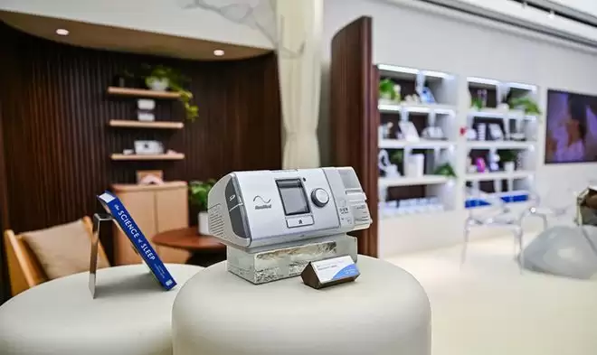针对睡眠呼吸暂停这一常见且危害较大的睡眠障碍,一批医疗级、便携化、高精度的新型睡眠科技产品正快速落地,把临床级诊断能力从实验室延伸到家庭与日常场景。澳大利亚呼吸机公司瑞思迈(ResMed)推出的家用呼吸机搭载AutoSet智能调压算法,可实时监测并精准识别打鼾、气流受限、呼吸暂停等多种异常呼吸事件,并依据患者实时的睡眠姿势、呼吸状态动态调节输出气压。