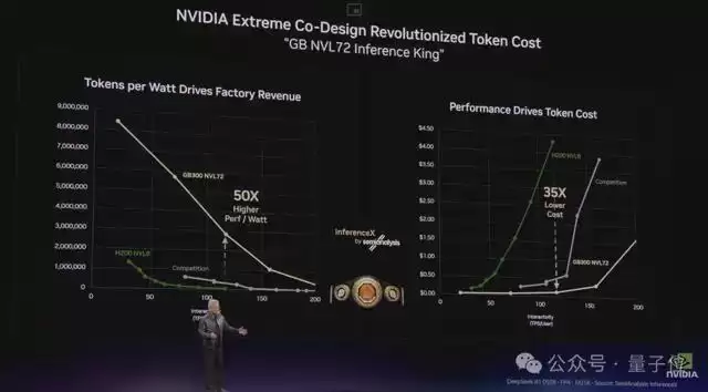 在同一座1GW数据中心里,从Grace Blackwell到Vera Rubin + Groq,token生成速率从200万跳到7亿。‘