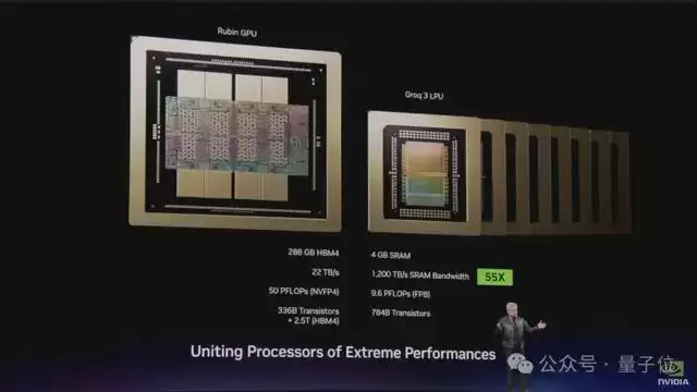 一颗Groq芯片4GB SRAM,一颗Rubin芯片288GB HBM。