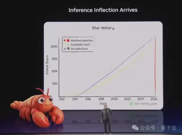 发布会的最后一部分,老黄画风一转,开始聊人类历史上最受欢迎的开源项目OpenClaw。