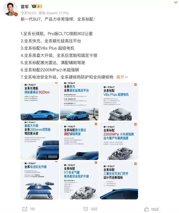 针对市场关注的定价策略,雷军坦言成本压力显著增加:"新一代车型在材料选择与智能配置上均采用顶级标准,价格调整不可避免。"据悉,新车起售价或将突破30万元区间,具体定价将在发布会上揭晓。目前生产线已进入满负荷运转状态,首批车辆将在发布会后立即启动交付程序。