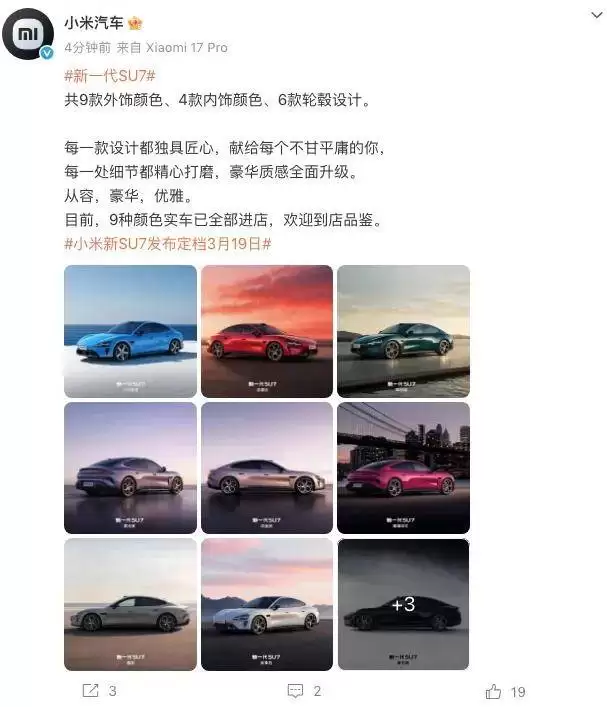 小米SU7新车3月19日发布:配置升级,价格调整引关注