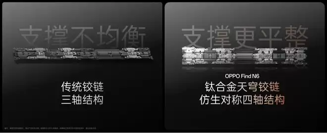 传统的铰链受限于加工精度,表面存在微观起伏,导致屏幕受力不均,折痕必然越用越深。OPPO的解决方法是两方面入手:一是硬件结构上,采用了仿生对称四轴结构,相比传统三轴铰链,表面的基础起伏从0.18mm压缩到了0.1mm;二是针对这剩下的0.1mm,引入了芯片级的高分子3D打印技术,通过2μm精度的光谱共焦扫描,把每一条铰链的微观不平整“抹平”。这相当于给铰链做了个“精密正畸”。