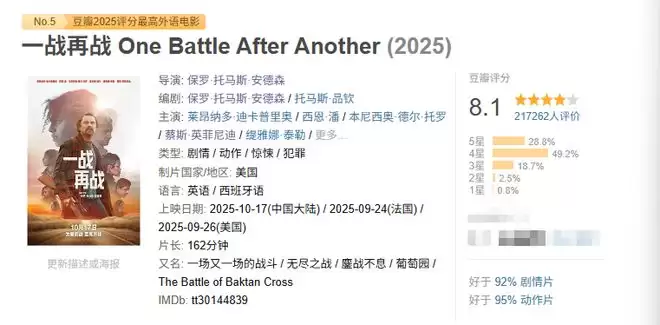 其实保罗·托马斯·安德森跟诺兰有些方面挺像的,尤其是在《一战再战》这部电影,都是那种典型的老牌电影死硬势力,故事相对更原创、也更电影,尤其是对胶片和电影院的迷恋,是这个流媒体甚至AI疯狂发展的今天,好莱坞更喜欢看到的一种电影。