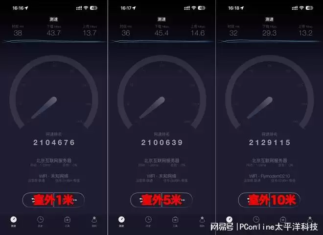 我们来到了楼下,分别在1米内、5米、10米的距离测试网络状态