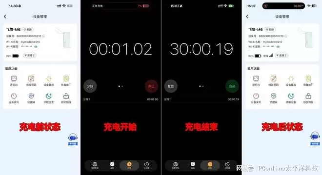 第4小时:飞猫M6随身WiFi剩余电量92%,机身表面温度正常。