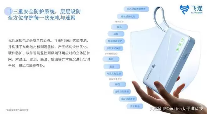 飞猫M6采用优质电池,并构建了从电池材料溯源质检、产品结构设计优化、硬件防护、软件智能监控到极端环境应对的立体防护网,对过压、过流、高温、低温等异常情况进行实时干预,将风险隔绝在外。此外,9000mAh的容量完全符合民航局登机规定,带上飞机毫无压力。