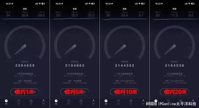 我们回到了办公室,分别在1米内、5米、10米和20米的距离测试网络状态