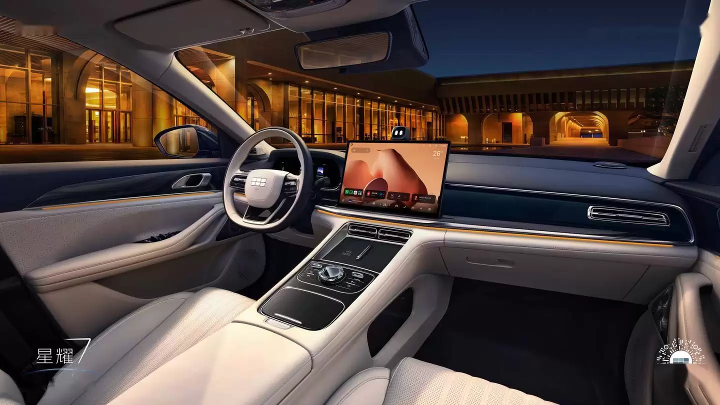 进入车内,星越7同样给人带来惊喜。环抱式座舱设计营造出温馨舒适的驾乘环境,座椅采用浮雕打孔工艺,不仅提升了乘坐的舒适度,更彰显了车辆的品质感。车内大面积使用软包材质,触感柔软细腻,顶棚则采用一体化成型工艺,提升了车内的整体感。中控区域的水晶旋钮与256色氛围灯的搭配,更是将车内的科技感与豪华感推向了新的高度。