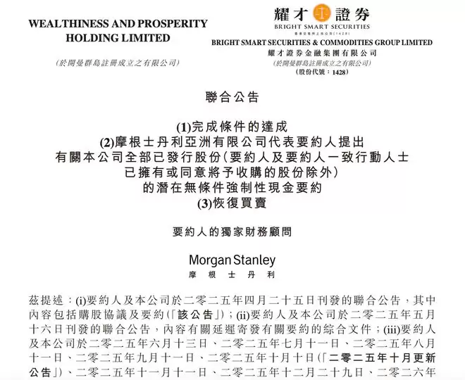 2025年10月,该收购获得香港证监会批准,允许蚂蚁成为耀才旗下四家受监管子公司的主要股东。2025年11月25日,交易双方修订协议,将截止日期延长至2026年3月25日,加付按金提升至1.64亿港元。公告指出,此次延长主要考虑到与监管部门的报告程序以及2026年第一季度假期因素,需要额外时间满足完成条件。