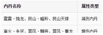 内丹属性羁绊:红底为高优先级培养内丹,增伤/减伤属性收益最高,可根据自身流派选择对应羁绊组合。
