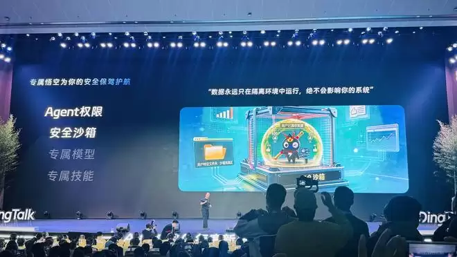 市面上那些爆火的“龙虾Agent”,陈航在台上直言不讳地评价:“一旦放出来,左手抓虾,右手抓鱼,到处打洞,木马病毒随之而来。”而悟空要做的事情,恰恰是把这只“龙虾”装进企业的笼子里,给它划定边界、分配权限、记录每一笔消耗。