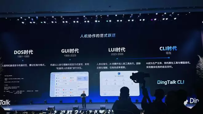3、AI时代工作基座DingTalk CLI(命令行界面)亮相,改变GUI(图形界面)交互方式;