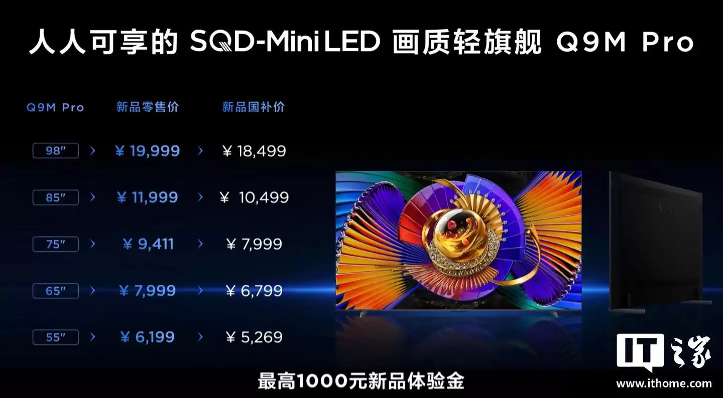 据IT之家从发布会现场了解,TCL Q9M Pro电视新品的零售价格自6199元起,其最终的“国补价”则为5269元起。