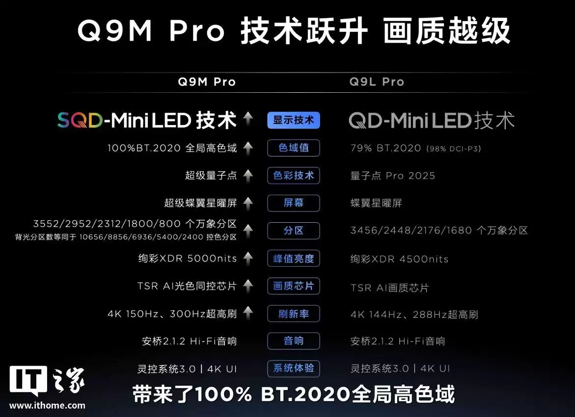 3月17日,IT之家消息:在今日举办的春季新品发布会上,TCL正式揭晓了TCL Q9M Pro SQD-Mini LED电视。