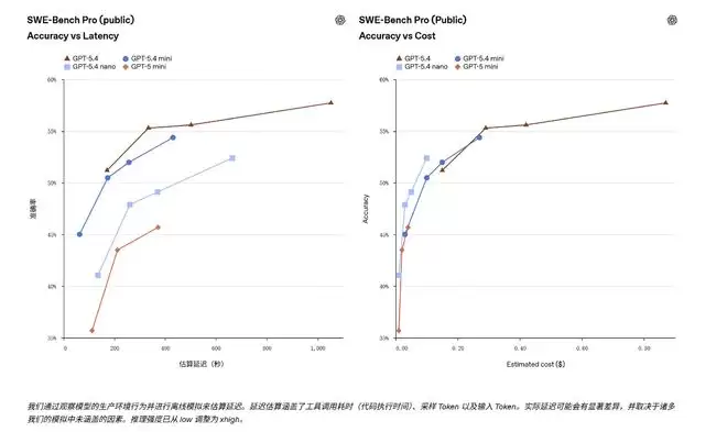 GPT-5.4 nano则是体积更小、速度更快的版本,主要针对分类、数据提取、排序及较简单的编程辅助任务。