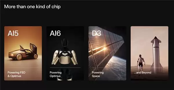 另一类是针对太空环境优化的高功率芯片,根据现场PPT的表述,被称之为D3芯片,可在恶劣环境下运行,能解决太空部署的热限制问题,为星链、星舰等太空项目提供算力,此外还有一款芯片面向“更远星际领域应用”,或许是连马斯克都没想好能干什么,PPT上连芯片名称都没有...