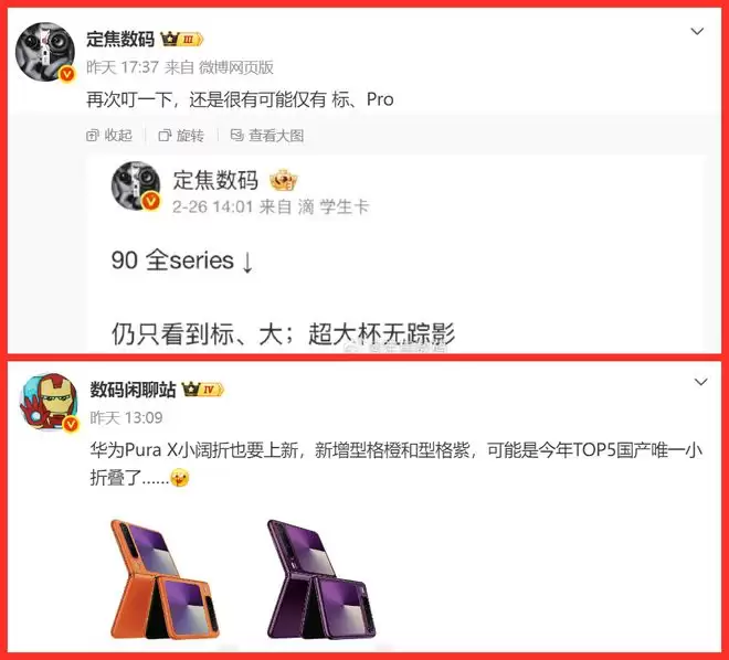 需要了解,从P系列升级为Pura以来一直维持的标准版、Pro版、Pro+版、Ultra版四档布局,这次可能直接缩成标准版和Pro版两个型号。