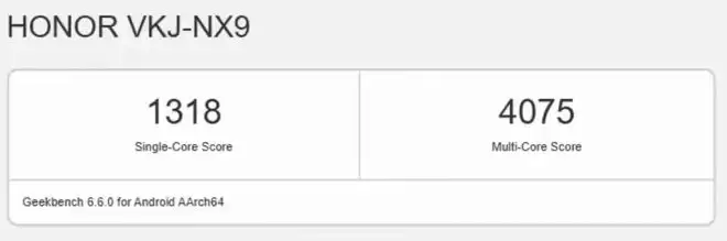 认证列表中并未显示具体的产品系列信息,但相关推测认为其指的是荣耀 600 手机。在 GeekBench 6.6.0 版本中,单核成绩 1318 分,多核成绩 4075 分。