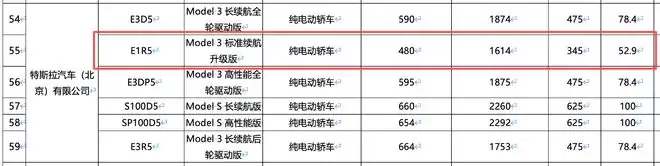 申报信息称这款车型搭载52.9kWh电池,CLTC续航为480公里,参数明显低于当前中国市场在售的Model 3后轮驱动版。