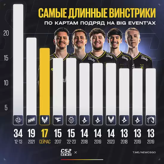在线下大赛地图连胜榜单中,当前Vitality位列第三名。排名第一的是2012-2013年的Ninjas in Pyjamas,Vitality距离34连胜还有相当长的距离。如果Vitality在鹿特丹半决赛中2-0击败对手,他们将追平位列第二的Natus Vincere。