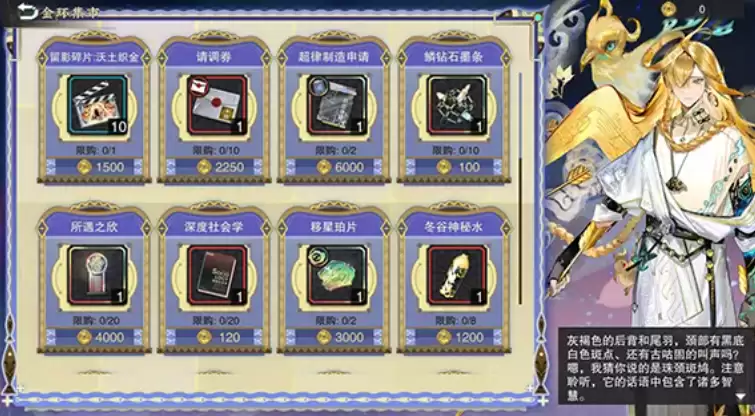 金环集市就是用鱼鸟金铢换东西的地方。可以换的东西,包括留影碎片:沃土织金、请调券、所遇之欣、移星珀片、冬谷神秘水、超律制造申请等,优先级的话,留影碎片和请调券比较重要,其他的按自己需要来。