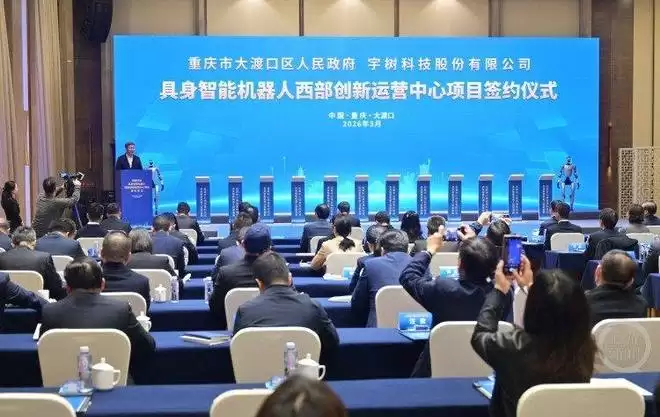3月26日上午,宇树科技具身智能机器人西部创新运营中心项目签约仪式举行。宇树科技与大渡口区人民政府签署合作协议,与市经济信息委、中国移动重庆公司签署战略合作协议,共同助力重庆大渡口打造百亿级智能机器