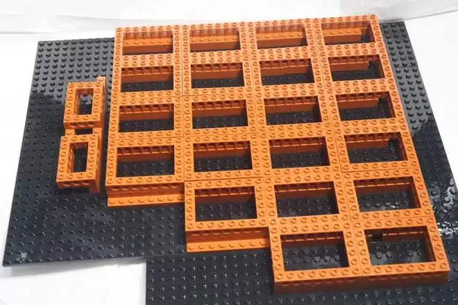 底板由多种尺寸的黑色小板拼合而成,地基部分由科技件支撑