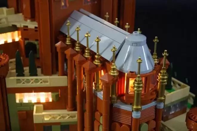 不考虑和海洋的位置关系,本作还原了红堡建筑群的主体部分。拼砌的时候,脑海中还能回想起权游每集开始时的BGM。玩具 的拼法和用砖都相当传统,都是积木微缩建筑常用的手法。 底盘比较稳定,正常托举移动不会散架。照明系统好歹也是专门设计过的,比直接给几个通用的发光件还是强不少的。考虑到题材的稀缺性,有兴趣的朋友可以关注。