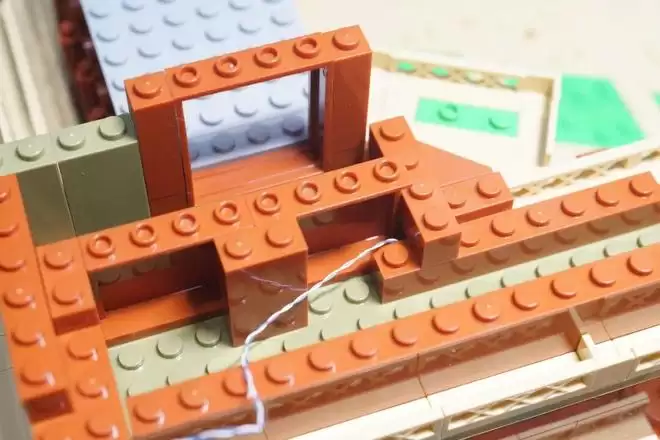 这些年很多积木品牌的照明系统都在逐步改进,但能有专门走线用砖的还是很少数。多数和这个一样,用能制造出缝隙的通用零件对付一下
