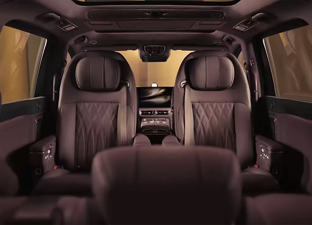 在核心配置层面,智界V9展现出技术集大成者的实力。车辆搭载华为最新研发的1.5T雪鸮智能增程系统,配合高效能量管理系统,实现1250公里超长综合续航,彻底消除新能源MPV用户的里程焦虑。智能座舱采用鸿蒙OS 4.0系统,支持多设备无缝互联,配合896线高精度激光雷达与华为乾崑智驾系统,可实现L2.9级自动驾驶辅助功能。针对MPV车型操控痛点,车辆创新配备±7度后轮转向系统与双腔空气悬架,最小转弯半径较传统MPV缩短1.2米,显著提升城市驾驶灵活性。