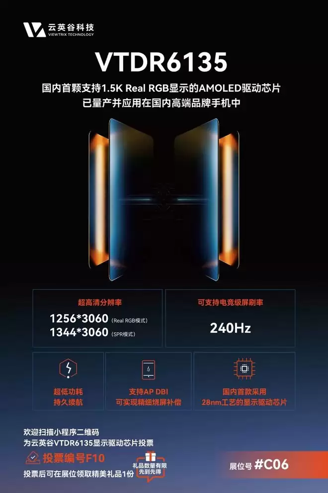 云英谷科技携国内首颗支持1.5K Real RGB显示的AMOLED驱动芯片——VTDR6135 参评SID中国区显示行业奖(CDIA)!