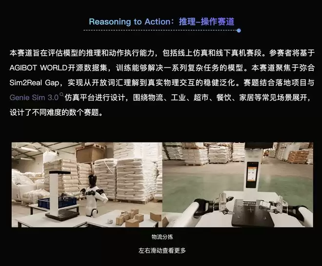 日前,智元机器人启动了一项机器人赛事AGIBOT WORLD CHALLENGE @ ICRA 2026(以下简称 ICRA 2026),两大核心赛道即为Reasoning to Action(推理-操作)和World Model(世界模型)。前者包括线上仿真与线下真机两个阶段,后者则聚焦具身智能中的生成与预测能力,采用线上竞赛方式。